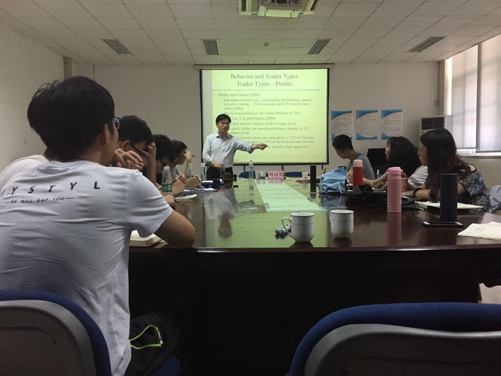 6月14日-16日,台湾政治大学商学院副院长暨财务管理系特聘教周冠男博士为皇冠体育 2017级研究生进行为期三天的《数量经济分析》课程授课,这是学院为进一步发挥皇冠体育 现有国际资源——‘海外名师’项目的潜力和影响,通过课程建设培养中青年教学骨干,增强课程的国际化和前沿化,研究生的国际化视野,增进国际化合作前景,提升年轻教师的科研合作开展的项目。授课方式主要采用讲授内容与方法、课下小组讨论做项目、课上小组讲解等形式进行,以英文材料、英文讲解、并配以中文解释的有效的双语授课方式进行。皇冠体育 教师朱庆锋、王怡、宗高峰等教师及金融学院部分年轻教师、2017级研究生及2016级及2015级金融数学专业部分本科生参加学术报告。