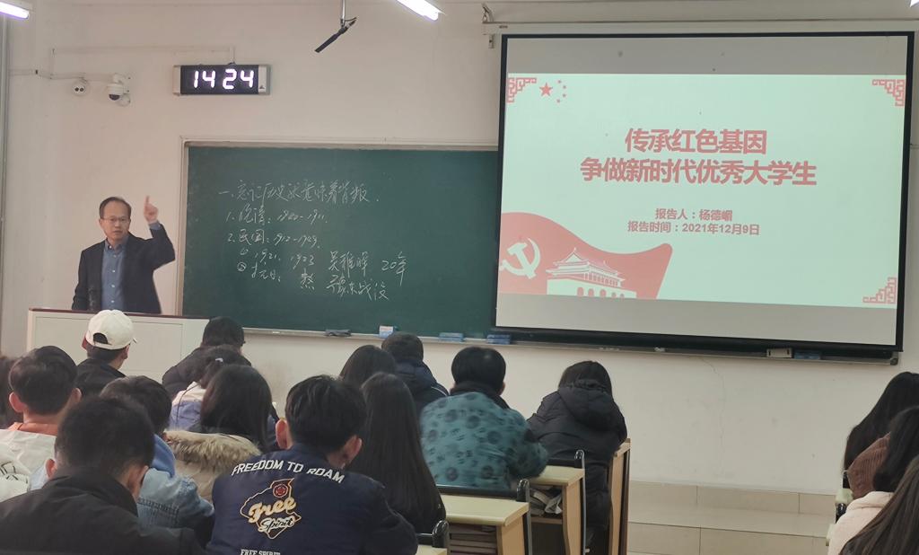 12月9日下午,皇冠体育 党委副书记杨德嵋为2021级少数民族预科班同学讲授“传承红色基因 争做新时代优秀大学生”党史教育课。
