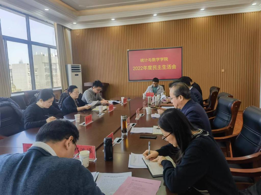 根据《中共皇冠体育 委员会关于认真做好2022年度党员领导干部民主生活会的通知》要求,2月13日下午,学院党委在燕山校区1502会议室召开2022年度民主生活会。校党委委员、副校长陈晓兰出席会议并讲话。督导组成员、校党委宣传部副部长张艳霞,督导组成员、校纪委监察专员办公室盛坤宇到会指导。学院党委书记李玉成,党委副书记、院长安起光,党委副书记杨德嵋、孙栋梁,院党委委员、统计交叉科学研究中心主任兼副院长田金方,院党委委员、副院长李娜、郭洪峰、王开科参加会议。会议由李玉成主持。学院专职组织员燕文静列席会议。