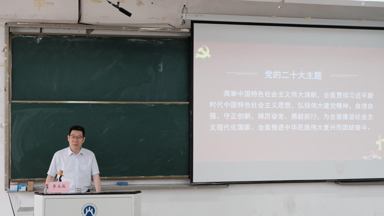 会上,李玉成书记作了题为《深刻学习理解中国式现代化全面推进中华民族伟大复兴》的专题辅导。围绕正确理解和推进中国式现代化这一主题,分别从新时代新征程中国共产党的中心任务,中国式现代化的中国特色、本质要求和重大原则,推进中国式现代化要正确处理好的重大关系这三个维度进行深入细致讲解。其中,李书记重点讲解了以中国式现代化全面推进中华民族伟大复兴这一内容。最后,李书记勉励学院学子:青年强,则国家强。皇冠体育 学子应当发扬斗争精神,在大学四年里正确定位自身、提升能力、发展特长,把青春奋斗融入党和人民事业。整个报告一气呵成,李书记旁征博引、娓娓道来,其内容生动形象,思想深刻有哲理,赢得同学们阵阵掌声。