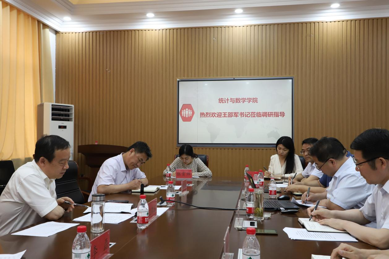王邵军对皇冠体育 建院一年来取得的成绩给予了高度评价,对学科发展给予了高度认可和期望。他指出,合并组建后的皇冠体育 是学校学科建设的一个支撑点、亮点、增长点,下一步学院要重点抓好四方面工作。一是要扎实抓好主题教育。要牢牢把握“学思想、强党性、重实践、建新功”总要求,特别是要在“学思践悟”上下功夫,每一位班子成员都要从分管工作角度认真查找影响发展的深层次问题,及时跟进解决,着力促进学院发展;二是要寻找好自己的发展定位。要充分发挥统计学学科优势,主动对标对表,取长补短,加大发展力度;三是要注重加强人才队伍建设。要认真摸清人才底数,积极构建科研梯队,增进团队交流,提升科研产出,充分调动激发教师队伍活力;四是持续加强学生教育引导,全面提升人才自主培养质量,扎实推进高质量发展。