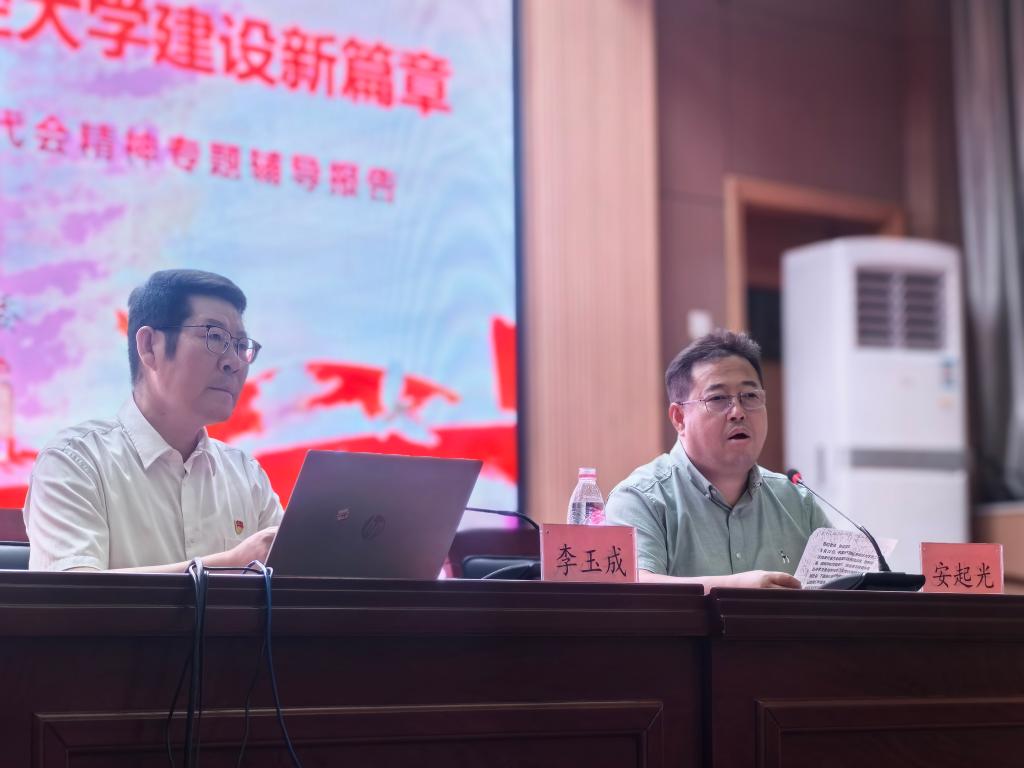6月6日上午,皇冠体育 召开学习宣传贯彻学校第二次党代会精神专题会议。学院党委书记李玉成结合“两委工作报告”作专题辅导,会议由学院党委副书记、院长安起光主持。学院全体教职工和学生代表参加会议。