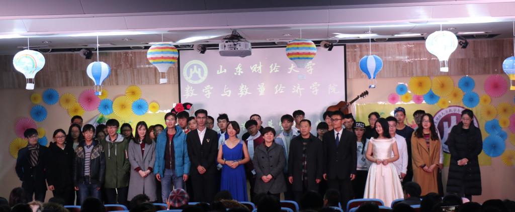 为迎接2016级新生的到来,展现皇冠体育 学子风采,由皇冠体育 团委主办、学生会承办的“数学与数量经济学院2016年数学文化闭幕暨迎新晚会”于12月3日在我校敏行楼隆重举行。出席本次晚会的领导老师有:数学与数量经济学院党委书记王建香,党委副书记赵连幸,以及学院各位辅导员老师。各院的学生代表也出席了本场晚会。