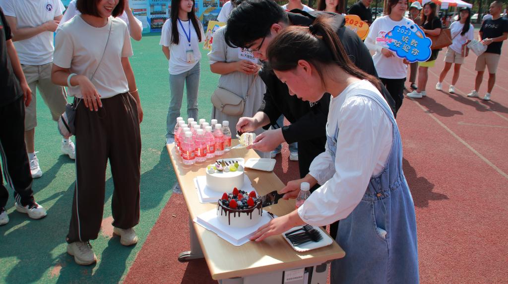在这些新生当中,恰巧葛丽丽、许恩卿两名同学在报到当天过生日,学院特意为他们准备了生日蛋糕,在场师生一起唱起“祝你生日快乐”,庆贺他们进入大学的第一个生日,同祝他们生日快乐!两名同学表示:看到蛋糕的时候特别地激动、感动,来学校的第一天就感受到了学院的温情,很高兴能成为统数学院这个大家庭中的一员。