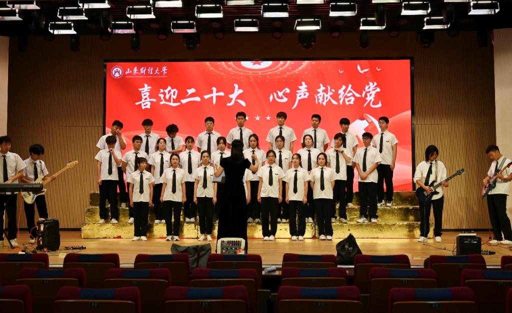皇冠体育 积极响应校团委号召,参加由山东省教育厅主办的“喜迎二十大,心声献给党”山东省大学生合唱展演活动,并于9月28日、29日顺利完成参演曲目《我爱你中国》的录制。活动中,皇冠体育 师生齐上阵,指挥老师、伴奏乐队、学生合唱团饱含深情、激情澎湃,伴着舒缓悠扬的音乐诉说着对党和祖国的热爱之情,为二十大献上青春赞歌。