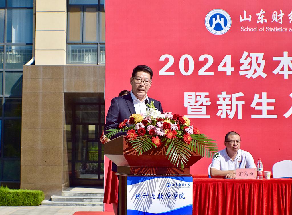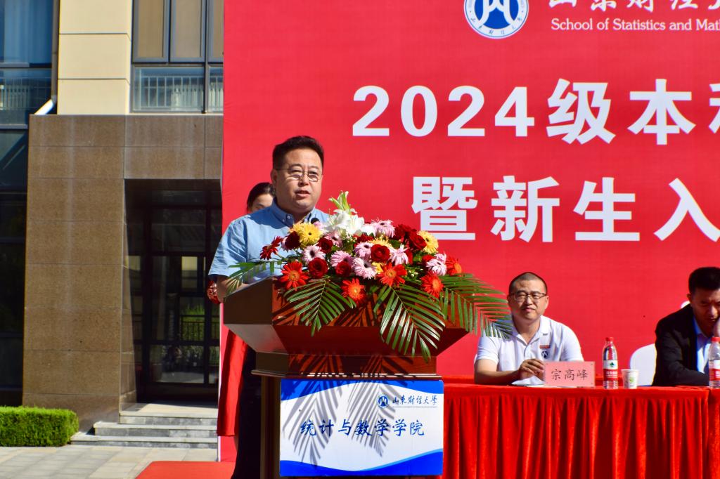 安起光首先代表学院全体师生对2024级新生的到来表示热烈欢迎和衷心祝贺。他指出,青年是时代的晴雨表,肩负着时代赋予的责任,也承载着时代的荣耀。同学们的到来为统数学院增添了新的活力和希望,期待大家的努力都能收获丰硕的成果。他强调,从今天起,同学们拥有了一个新的身份——统数人。学院将不负大家的信任与期待,致力于培养党和国家需要的优秀人才。在这里,同学们将有更多机会接触时代前沿,探索未来发展方向,学院也会搭建培养复合型人才的广阔平台,助力大家全面、多元发展。面对新的起点,安起光向全体新生提出了三点希望:一是要明确目标,志存高远,树立远大的志向和清晰的成长方向,以梦想为动力,持续奋斗;二是要强化能力,适应变革,培养跨学科思维和创新能力,勇于探索未知领域;三是要锤炼意志,保持阳光自信,遇到挑战时要保持乐观心态,积极锻炼身心,努力成为时代的栋梁。
