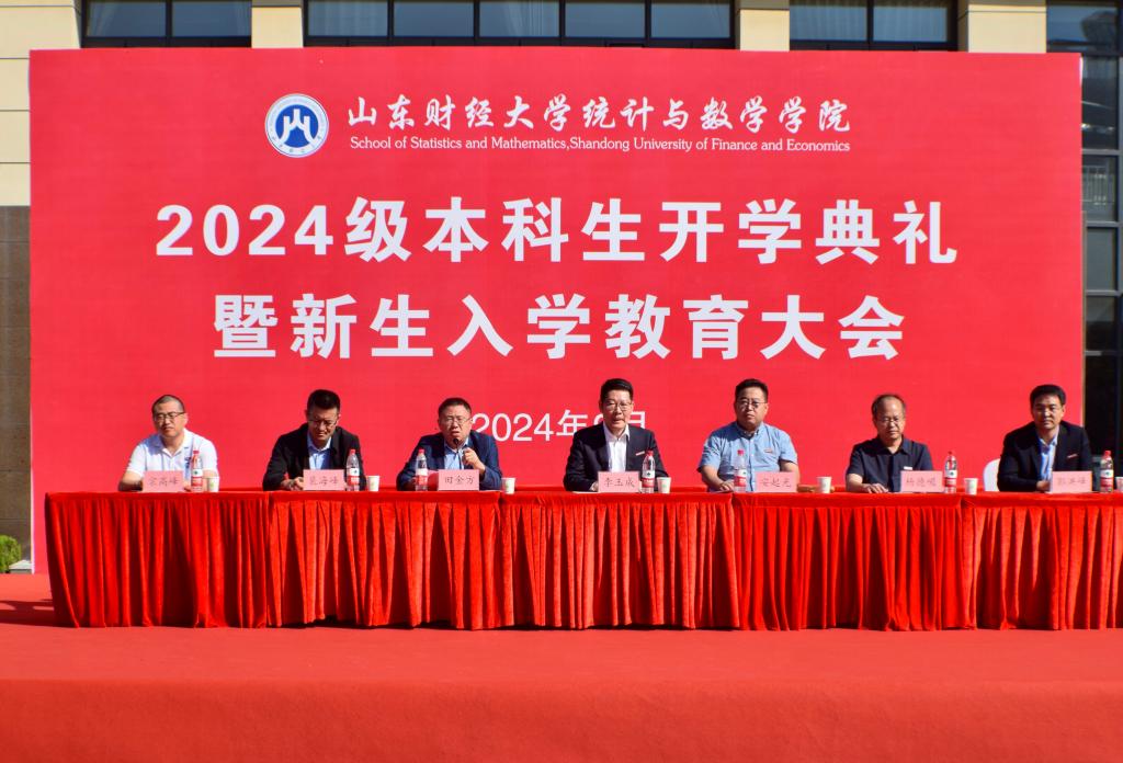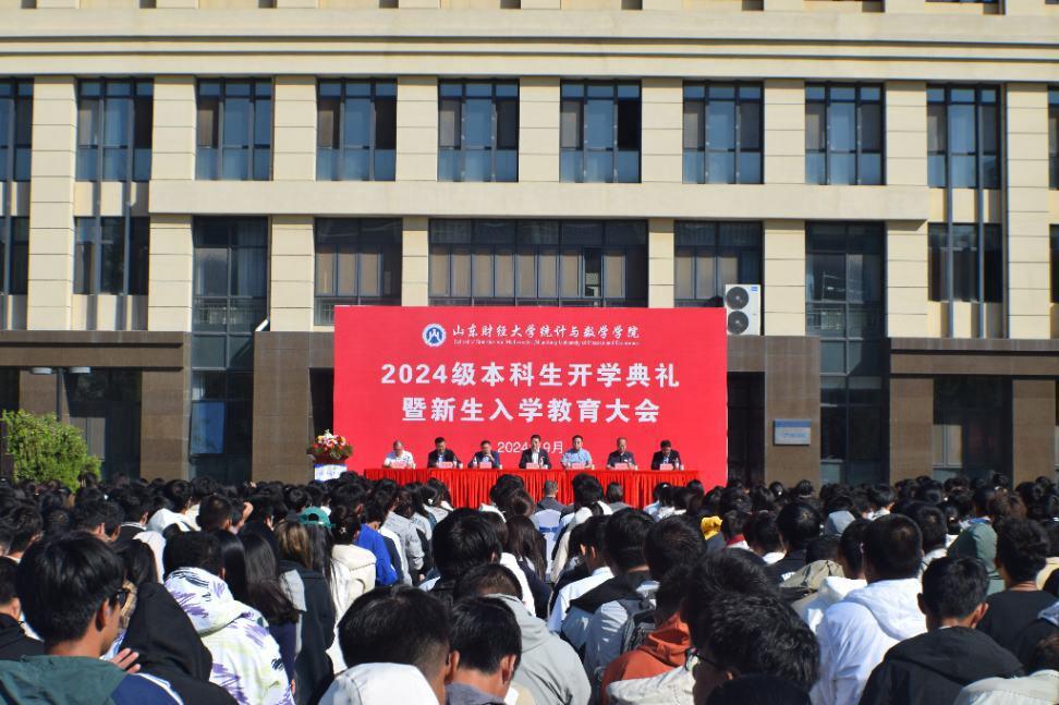 9月22日上午,皇冠体育 在圣井校区举行2024级本科生开学典礼暨新生入学教育大会。学院党委书记李玉成,院长安起光,统计交叉科学研究中心主任、副院长田金方,党委副书记杨德嵋,副院长裴海峰、郭洪峰,教师代表宗高峰,全体辅导员,全体带班以及2024级全体新生参加。大会由田金方主持。
