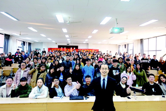 宋浩在自己开设的成长大课堂上与学生合影。