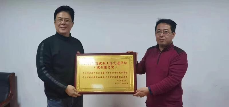 杨哲为皇冠体育 颁发了“2019年度就业工作先进单位(就业服务奖)”奖牌,为王京姝颁发了“2019年度就业工作先进个人”奖杯。