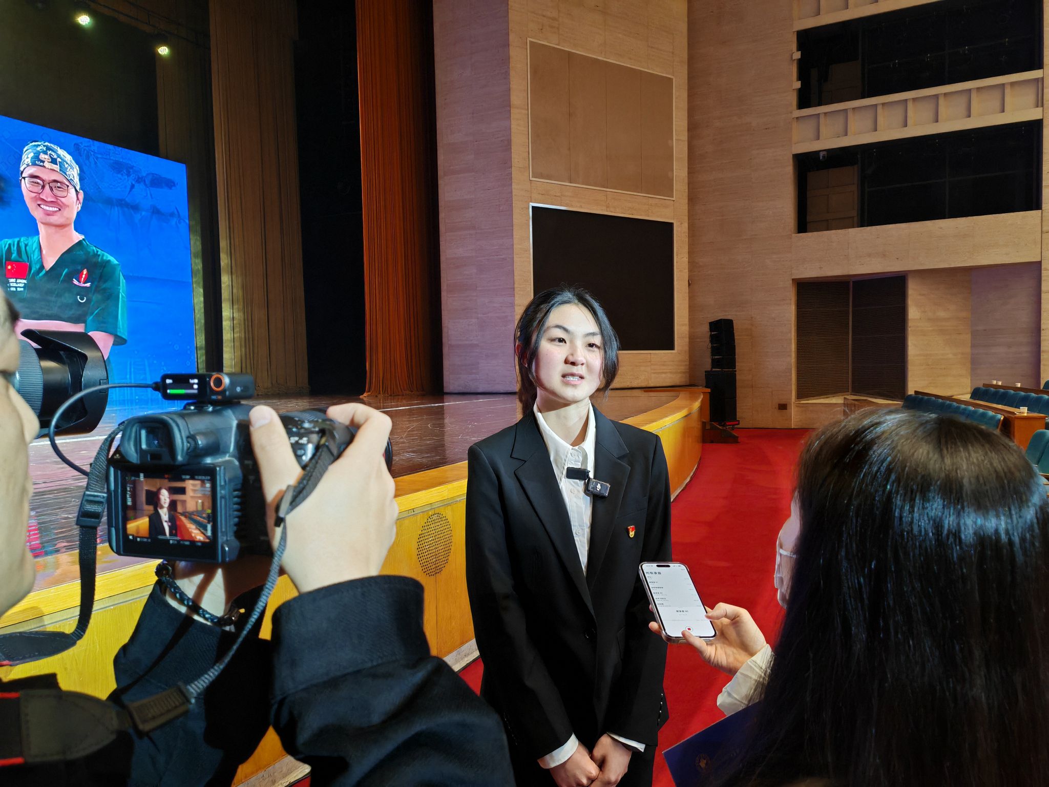 报告会后,学生代表接受媒体采访,畅谈学习体会。2022级金融数学3班冉维振说:“聆听张军桥同志先进事迹报告会,让我深受触动。作为学生党员,我的成长离不开国家、社会、学校老师的悉心培育与无私关爱。我将以张军桥同志为榜样,以所学服务社会、回馈人民。”2023级金融数学1班刘泽萱说:“报告会后,我的内心久久不能平静。作为一名青年学子,我被他把救人融入生命自觉、把奉献当作日常的精神深深感染。他让我明白,未来要成为什么样的人。”2023级数据科学与大数据技术2班韩庆武说:“绷不住,眼泪瞬间流下来了,张军桥同志是手术台上争分夺秒的医者,更是危急时刻舍己为人的勇者,他用生命书写了新时代医者与党员的最美答卷。我要把他当作人生中的灯塔,发扬他无私奉献的精神。”