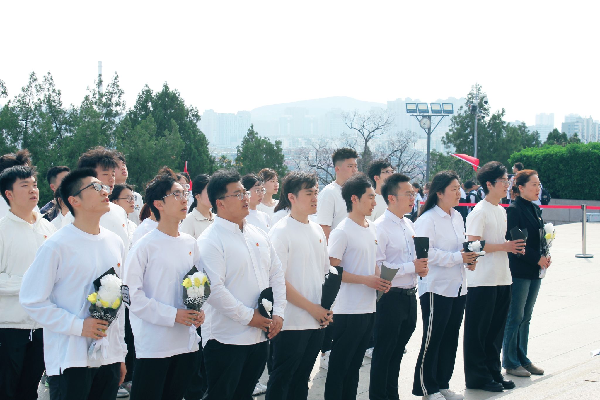 在庄严肃穆的革命烈士纪念塔前,师生整齐列队,高唱《义勇军进行曲》,并向革命先烈行三鞠躬礼,深切悼念为民族独立和人民解放英勇献身的革命先辈。随后,大家依次敬献亲手制作的花束,寄托对英烈的无限哀思。学生代表范欣然以《缅怀革命先烈,勇担时代重任》为题发言,表达了全体学子对革命先烈的深切缅怀与崇高敬意。祭扫仪式结束后,学生们有序瞻仰革命烈士纪念塔,认真学习革命先辈的英雄事迹。