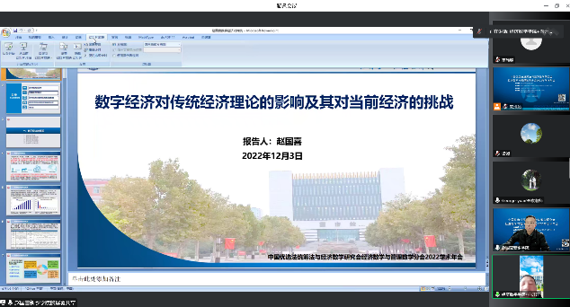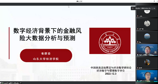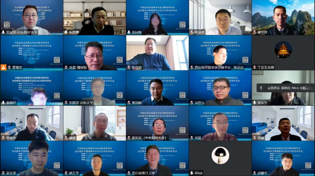 12月3日,由中国优选法统筹法与经济数学研究会经济数学与管理数学分会主办、皇冠体育 承办的“中国优选法统筹法与经济数字研究会经济数学与管理数学分会2022年学术年会”以线上形式成功举办。皇冠体育 副校长谢申祥教授、皇冠体育 院长安起光教授等先后致辞。来自本学会的会员、理事,以及全国各兄弟院校、科研院所的有关专家、学者及研究生共计百余人参加了本次会议。本次年会由中国优选法学会经济数学与管理数学学会副理事长兼秘书长徐凤敏教授主持。本次年会以“以数字经济构建发展新格局”为主题。