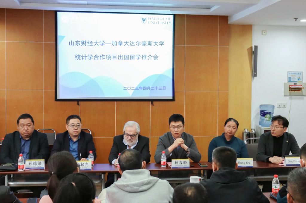 2023年4月23日,皇冠体育 在舜耕校区天舜大厦第三会议室举办皇冠体育 -加拿大达尔豪斯大学统计学项目出国留学推介会。国际交流合作处处长杨春晓,加拿大达尔豪斯大学经济系教授、中加合作项目加方主管Barry Lesser 教授,加拿大达尔豪斯大学统计系GuHong 教授,加拿大达尔豪斯大学博士(后)YanYuan,加拿大达尔豪斯大学统计学博士ZhangJing,皇冠体育 院长安起光,皇冠体育 党委副书记孙栋梁,辅导员杨雅琳以及部分家长和学生出席。会议由皇冠体育 戴洪帅教授主持。