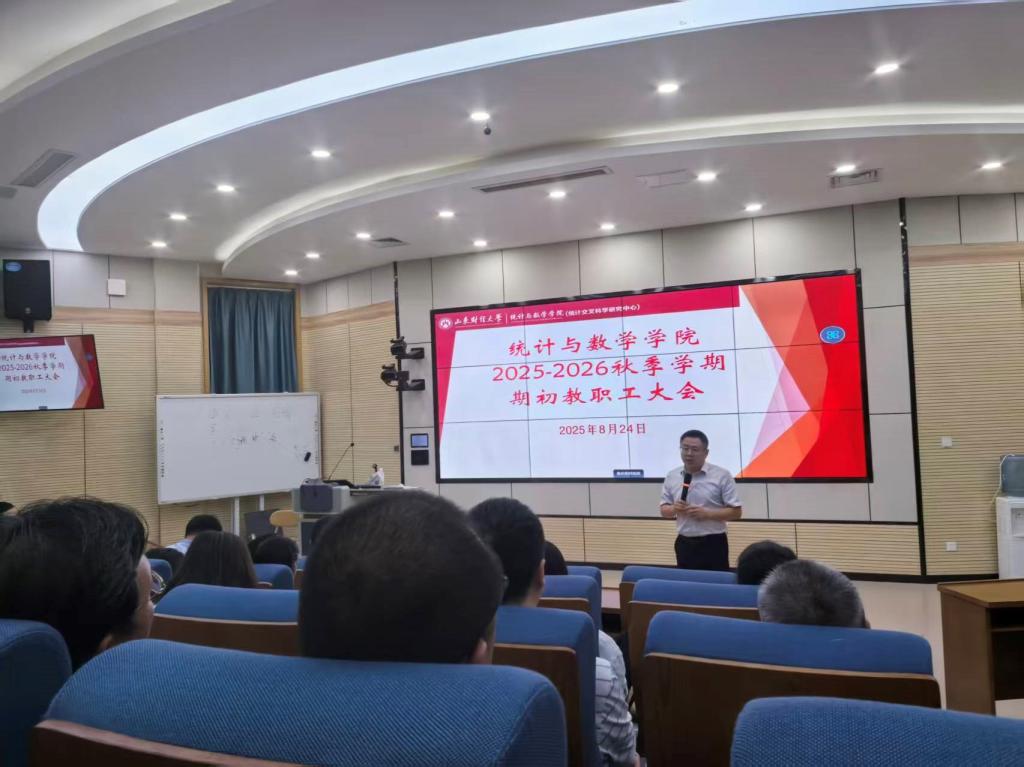 院长田金方主持了青年教师及师资博士后的入职见面仪式,总结了学院暑期工作,并对新学期学院各项工作进行明确部署。他强调,一要把握三个新形势。当下,教育强国战略稳步推进,这是时代赋予我们的重大使命,学院必须紧跟国家步伐,为培养高素质人才贡献力量。学校全面深化改革正当时,这是学院发展的外部驱动力,我们要积极融入学校发展改革大局,借势而上。同时,作为体量可观的学院,我们肩负着更大的责任与担当,要在学校发展中发挥引领示范作用。二要推进三大转型。学院发展数智化转型,提升学院的竞争力。人才培养要从传统课堂体系迈向导学体系,培养学生的创新思维和实践能力。师资队伍要不断提升自身的数字素养和教学创新能力,适应新时代教育教学的需求。三要落实三个聚焦。聚焦学院高质量发展,以提升教学质量和科研水平为核心,打造学院特色品牌。聚焦“一院一书”,精心谋划、扎实推进,确保目标任务圆满完成。聚焦学科交叉融合,以“统计+数学+AI”为突破口,打破学科壁垒,促进学科间的深度交流与合作,培育新的学科增长点。
