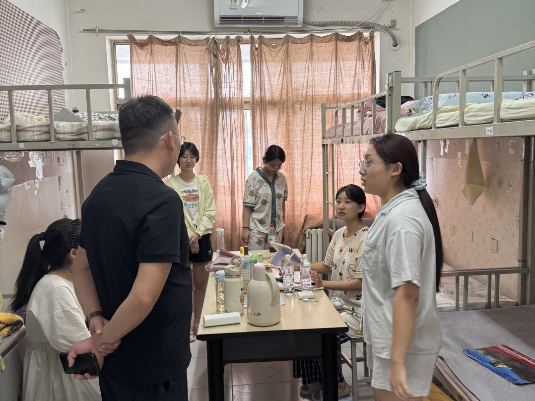 辅导员进宿舍活动开展,进一步拉近了新生与辅导员的距离,加深了彼此间的联系。辅导员们走进新生宿舍,与新生们促膝长谈。她们不仅细致地讲解宿舍设施的使用方法、校园水电缴费等生活细节,还热情分享自己的学习经验与校园生活感悟,让新生们在温馨的宿舍环境中,切实感受到学校的关怀。