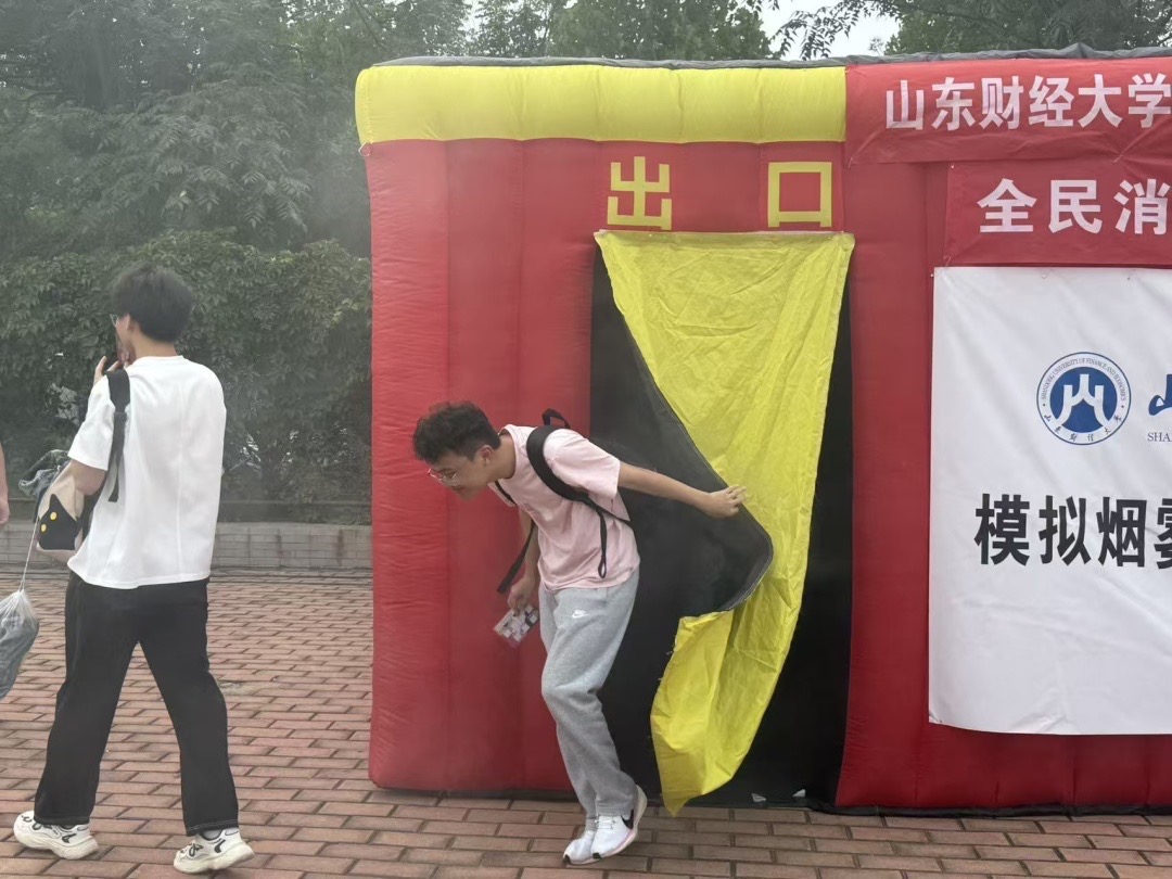 消防演练现场,专业人员详细讲解消防知识、急救知识和逃生技能。新生们认真学习灭火器使用方法、海姆立克急救法和心肺复苏,参与模拟火灾逃生演练,增强了消防安全意识与应急避险能力。