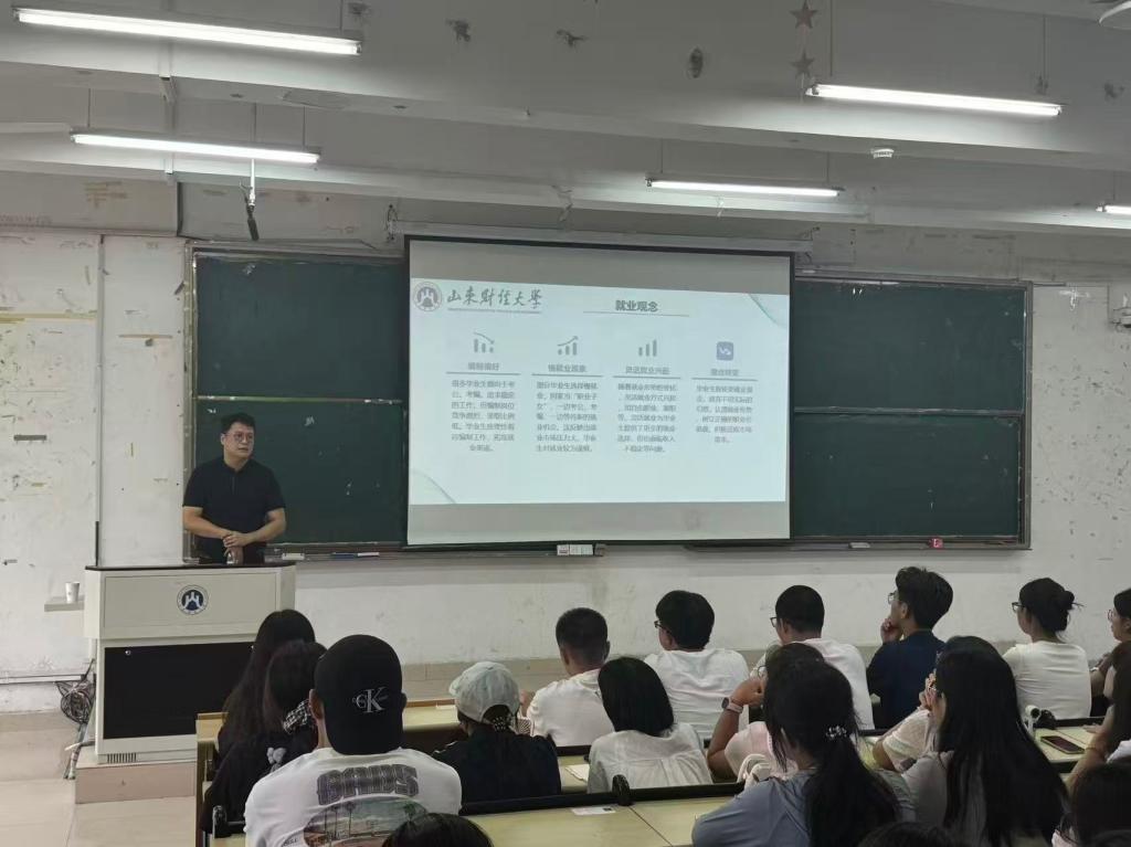 就业指导处副处长何峰以“认清就业形势、锚定职业方向”为主题,围绕“理性看待就业、科学规划未来”进行了深度解读。他结合当下就业现象与观念,为新生带来全面而实用的职业发展指导。在就业支持方面,他详细介绍了学校的多项举措:针对不同专业,搭建校企合作实习基地,提供个性化岗位推荐;同时,为有考研、留学需求的学生开设专项指导讲座,帮助他们科学规划学业与未来路径。最后,他特别鼓励新生积极参与全国大学生职业生涯规划大赛、校内职业模拟挑战赛等活动,在实战中积累经验、明确方向,从而为今后的职业成长注入信心与动力。