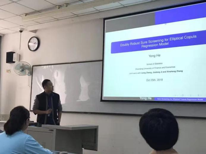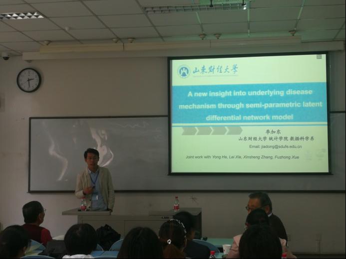 皇冠体育 派出数理统计系的戴洪帅、何勇、季加东、于渊、孔令涛、郝涛等六位教师代表参加了此次会议。会议期间,戴洪帅老师做了题为“Stationary Distributions for Two-Dimensional Sticky Brownian Motion: Exact Tail Asymptotics and Extreme Value Distributions”的报告,何勇老师做了题为“Doubly Robust Sure Screening for Elliptical Copula Regression Model”的报告,季加东老师做了题为“A New Insight into Underlying Disease Mechanism Through Semi-parametric Latent Differential Network Model”的报告。