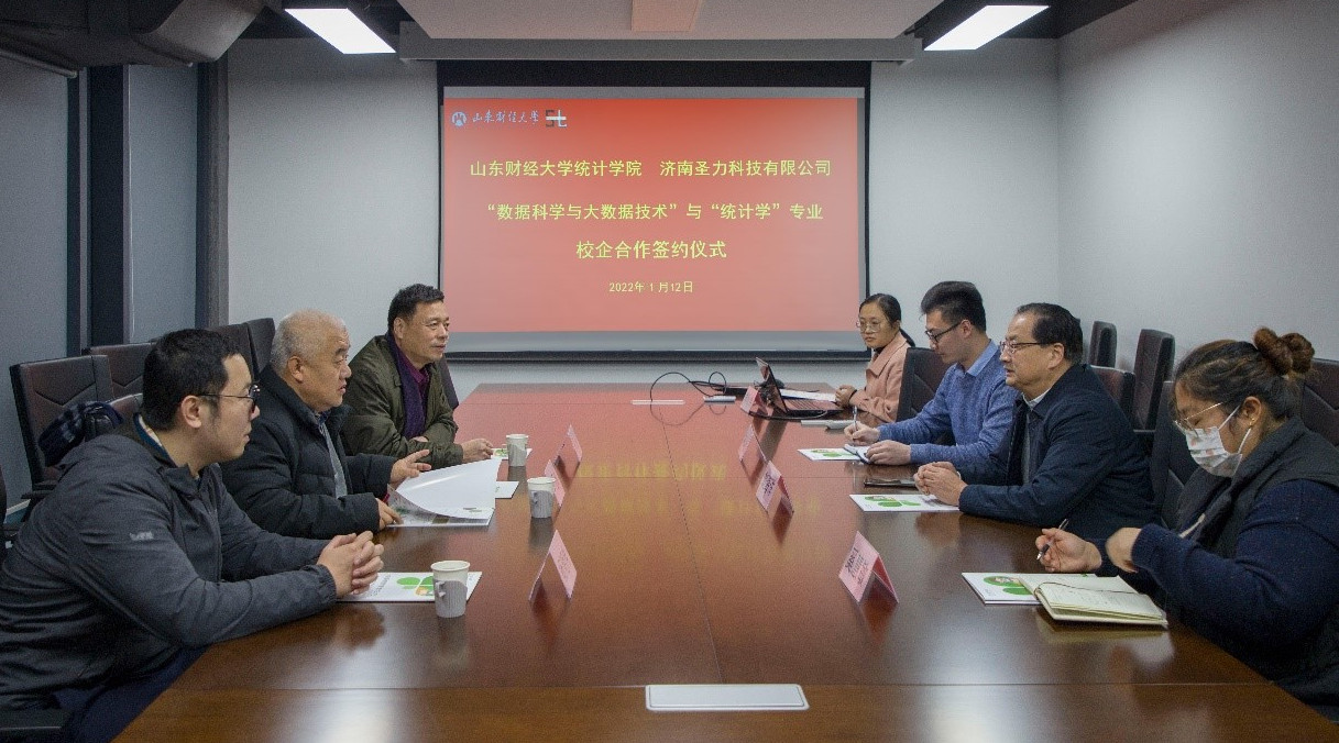 2022年1月12日,皇冠体育 统计学院与济南圣力科技有限公司校企合作签约仪式在圣力科技第一会议室成功举办。皇冠体育 统计学院党委书记郑磊、院长李国锋、办公室秘书杨明伟,济南圣力科技有限公司总经理刘海洋等出席签约仪式。