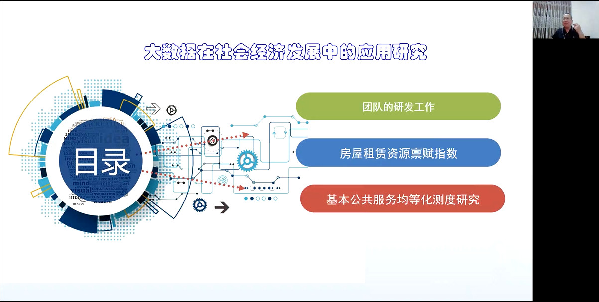 报告伊始,李国锋教授对朱建平教授做客报告会表示了热烈欢迎和衷心感谢。随后,朱建平教授围绕“团队研发工作、房屋租赁资源禀赋指数开发、基本公共服务均等化测度研究”等主题展开了详细讲解和讨论。从零售商品大数据、物联网大数据、手机定位大数据、文本大数据等的分析,到“数创金融”信用评级、主客观权重合成方法等,使用大量的实际研发案例,讲解如何利用大数据技术开发房屋租赁资源禀赋指数,研究基本公共服务均等化测度等项目的理论分析、数据采集与处理技巧、模型方法利用技能和应用经验,内容丰富多彩,结合实际问题的统计大数据分析方法的讲解,给了师生们以重要启发,只有将我们学习到的统计建模与数据分析知识与实际问题相结合,我们的学习和研究才有生命力。