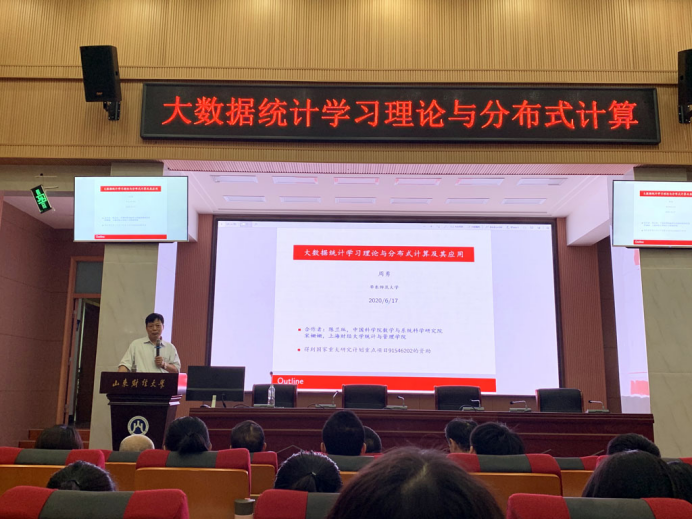 9月13日下午,统计学院“百脉大讲坛”第77讲在实验楼一楼报告厅顺利举行,华东师范大学经管学部统计交叉科学研究院院长周勇教授做了主题为“大数据统计学习理论与分布式计算及其应用”的报告。报告由统计学院院长李国锋教授主持,学院部分教师及博士、硕士研究生参加了此次学术活动。