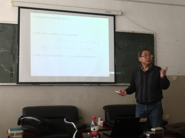 王教授首先介绍了所研究问题的背景:平稳时间序列,单位根检验,协整,然后引出了所研究的问题:非线性协整。随后王教授为大家介绍了研究非线性协整证明过程中的技术性工具。最后王教授介绍了与合作者近期完成的关于非线性协整的结果和下一步拟开展的研究工作,并围绕这些问题与大家进行了探讨。