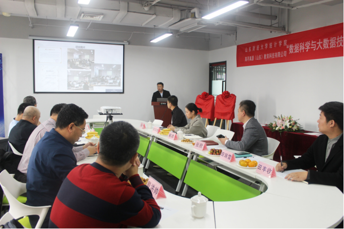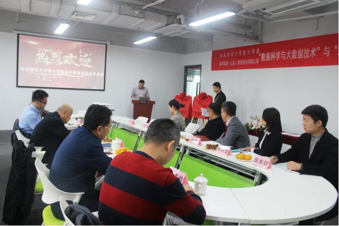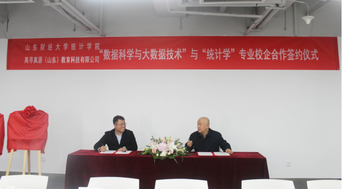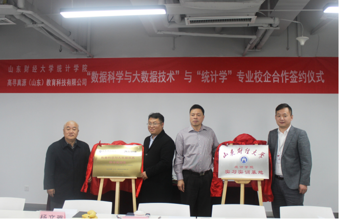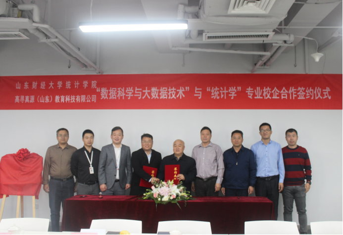 为进一步强化校企合作办学,推动产学研深度融合,2020年10月16日,皇冠体育 统计学院与高寻真源(山东)教育科技有限公司举办关于“数据科学与大数据技术”“统计学专业”校企合作签约仪式。皇冠体育 统计学院党委书记郑磊、院长李国锋、党委副书记赵世民、副院长裴海峰、实验室主任任文东、数理统计系副主任戴洪帅以及高寻真源(山东)教育科技有限公司执行董事张欣、副总经理韩帅、副总经理徐冉、运营管理中心经理田瑞雪、技术研发中心主管田丰收、售前工程师杨文雅等参加了此次签约仪式。仪式由高寻真源(山东)教育科技有限公司副总经理徐冉主持。