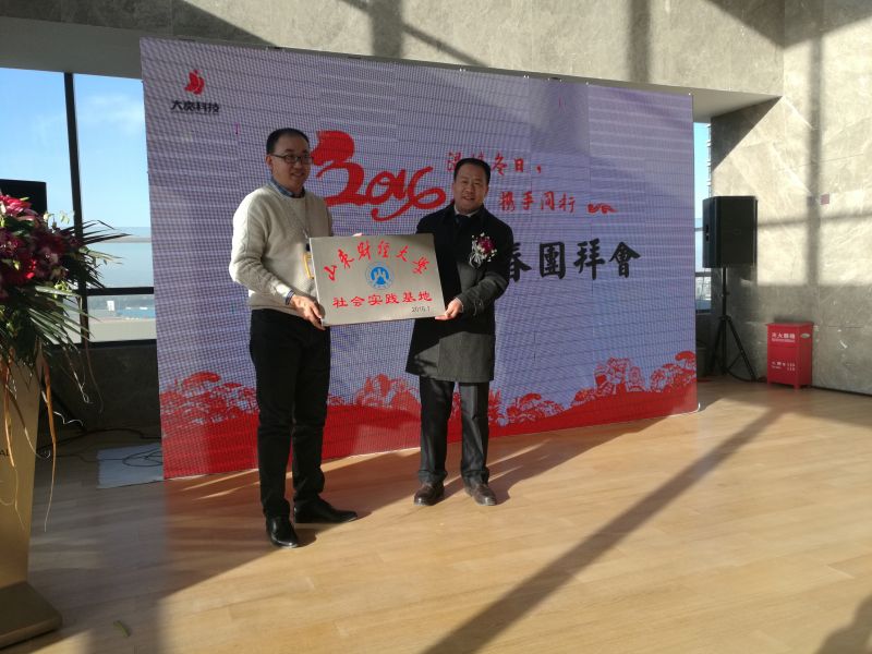 在北京大贲科技有限公司举行社会实践基地揭牌仪式,党委副书记赵连幸,就业办主任张亚萌,教师代表周锋波参加了活动。