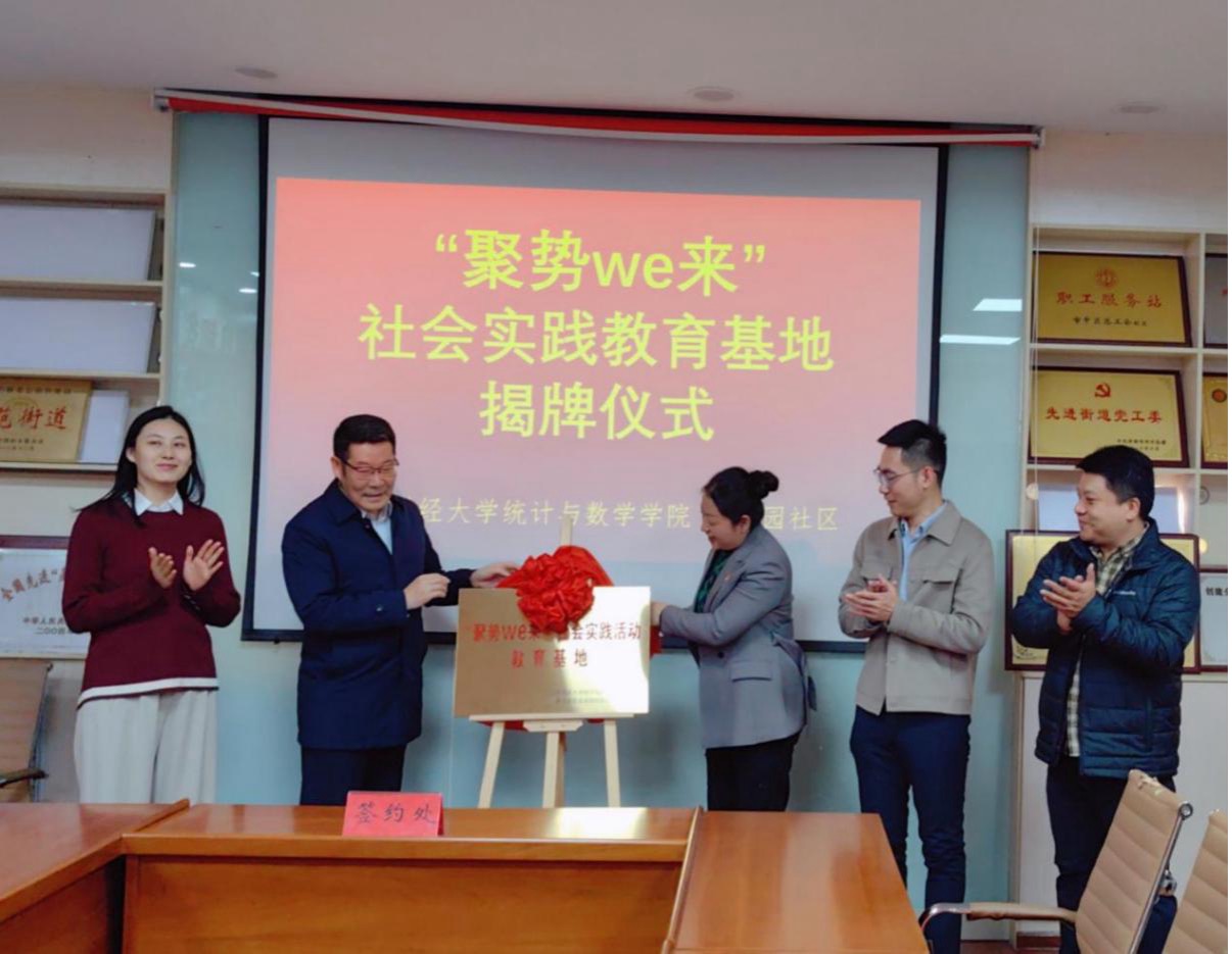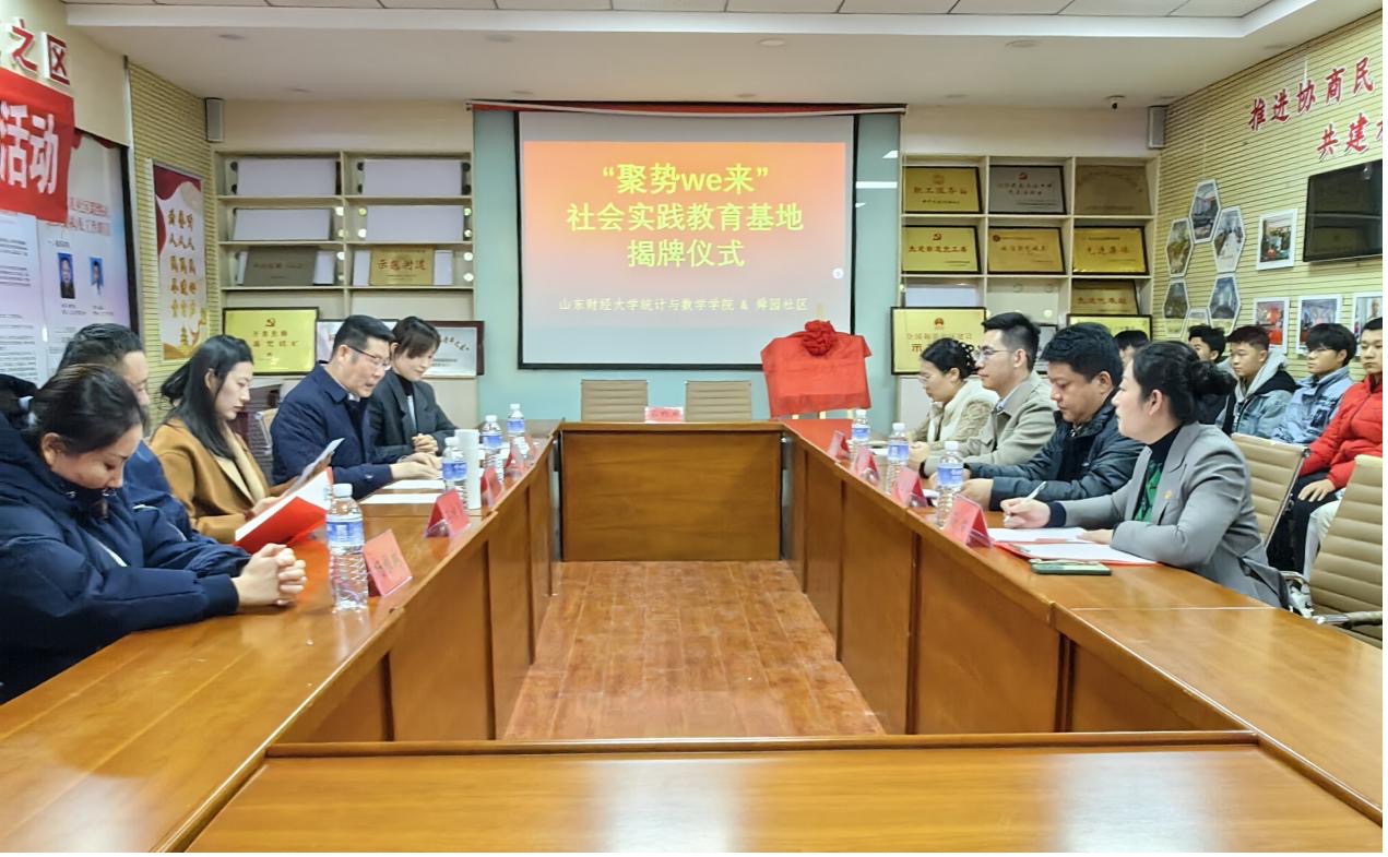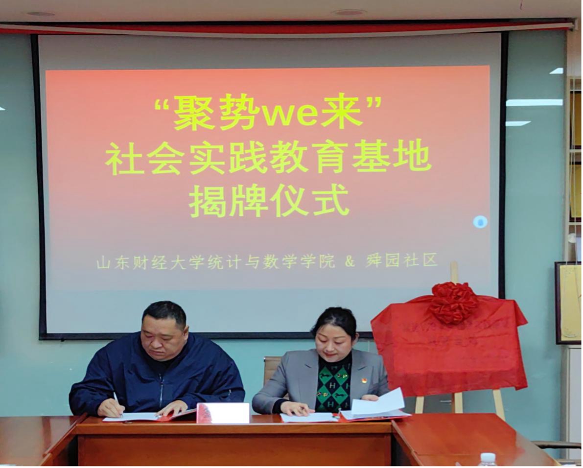 11月13日下午3点,根据共青团山东省委、山东省教育厅《关于开展“百万大学生进社区”社会实践的工作方案》部署要求,皇冠体育 统数学院与舜玉路街道舜园社区“聚势We来”共建结对社会实践活动揭牌仪式在舜玉路街道舜园社区一楼会议室隆重举行。团市中区委副书记(挂职)王豪,舜玉路街道党工委副书记、总工会主席刘恒溪,舜玉路街道团委副书记翟羽佳,舜玉路街道舜园社区综合党委书记、居委会主任孙怡,皇冠体育 团委副书记邢夏子,皇冠体育 党委书记李玉成、党委副书记孙栋梁,学院团委书记张秀萍、心理中心主任杨雅琳及部分学生代表出席了本次启动仪式。